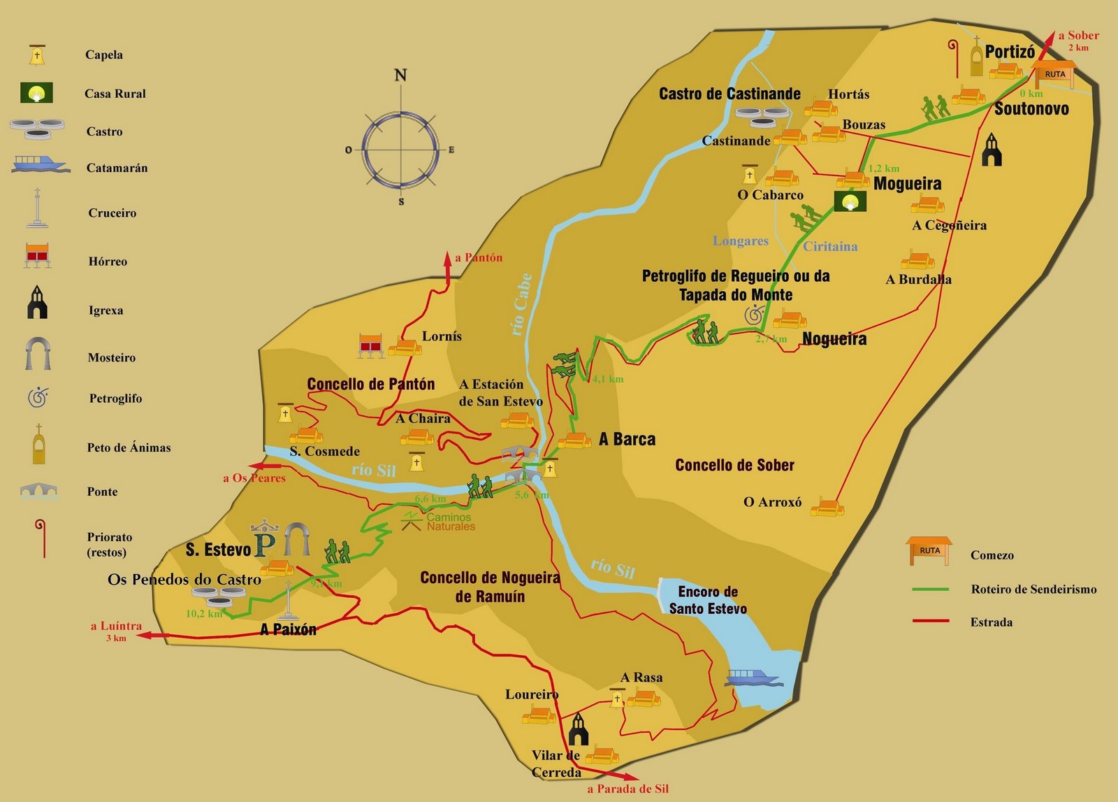 Volvemos nós por estes vellos camiños engarzando co elo da lenda as vellas relacións; porque as lendas son verdade: as pontes, os saltos descomunais, os seres que se agochan nos penedos, nos regos, nos soutos, fan desta viaxe iniciática, da Pena do Baldeiros ó Castro dos Penedos, unha volta ó onphalos nutricio, dende onde poderemos abrirnos ó mundo.