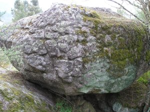 Nesas pedras, que ocupan un lugar visible na paisaxe –se obviamos a mesta broza invadíndoas-, as coviñas non chamarían a atención se non fora porque están nun espazo con moitos fitos arrecendendo a rito ancestral.