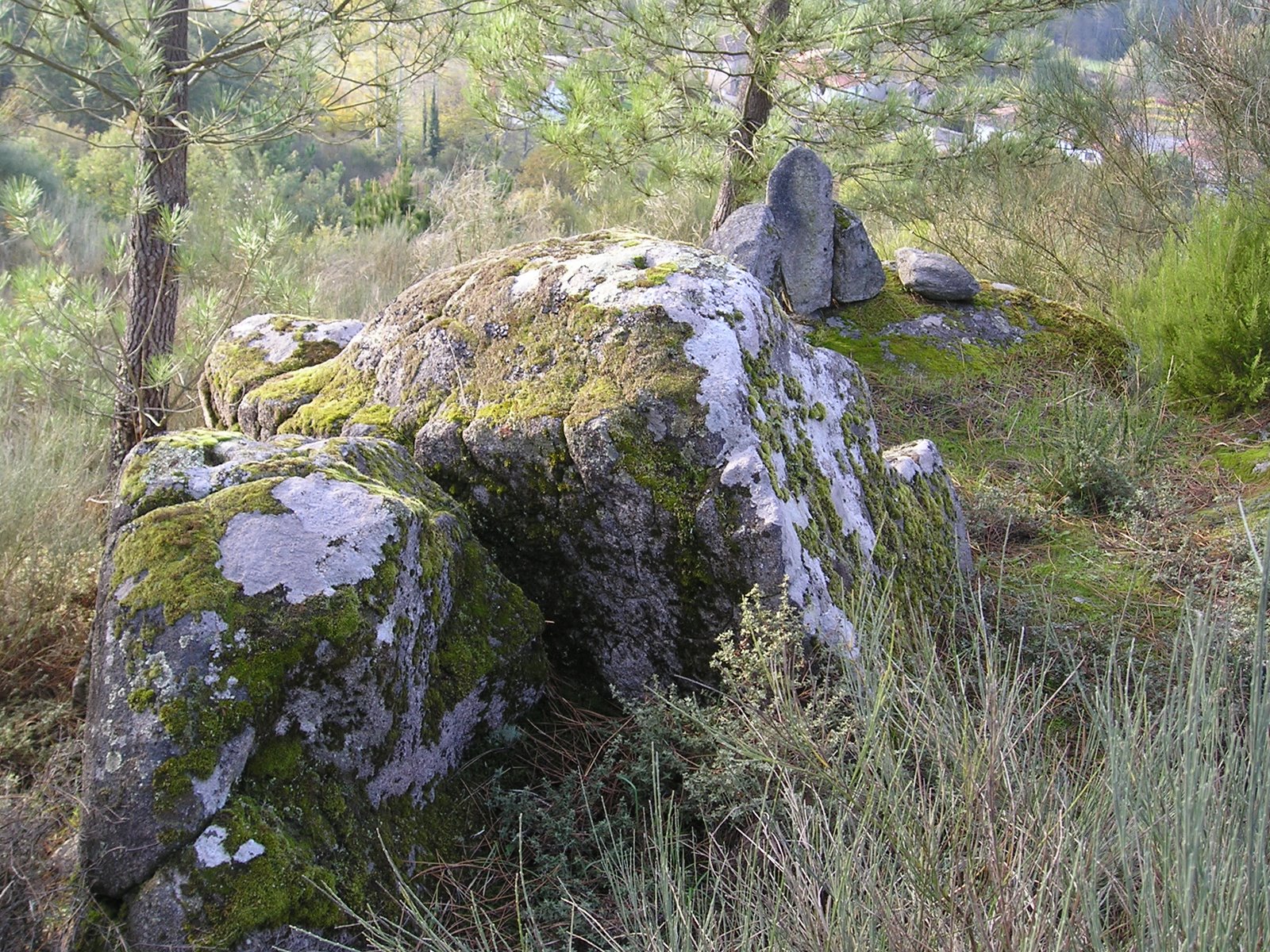 Nesas pedras, que ocupan un lugar visible na paisaxe –se obviamos a mesta broza invadíndoas-, as coviñas non chamarían a atención se non fora porque están nun espazo con moitos fitos arrecendendo a rito ancestral.