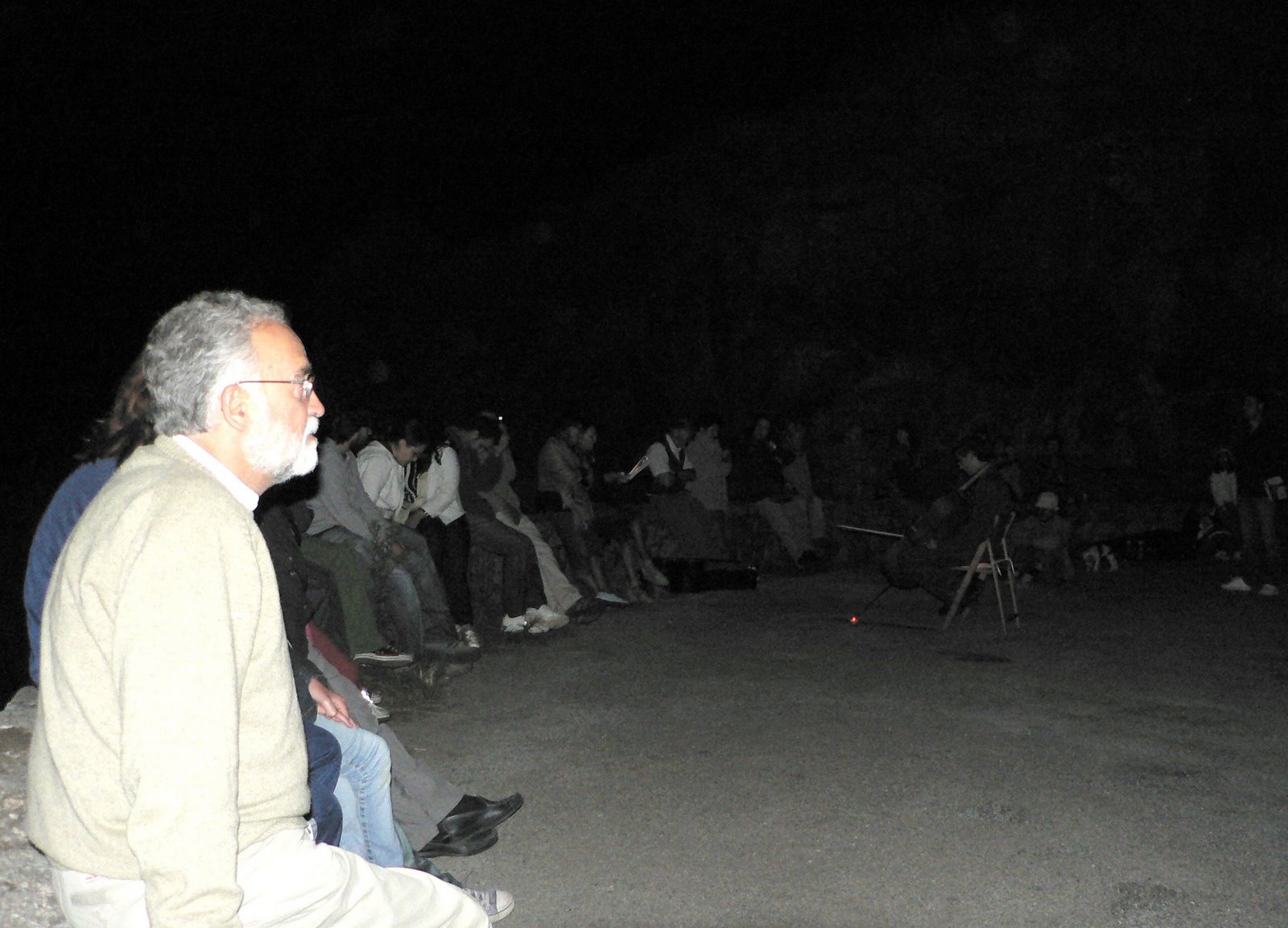 Queríamos probar como funcionaba este roteiro, á luz da lúa (chea, inda que non no plenilunio), con música e recitado de poesía.