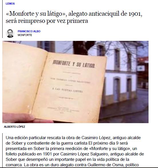 * Quedan algúns exemplares á venda nas librarías de Monforte de Lemos.