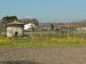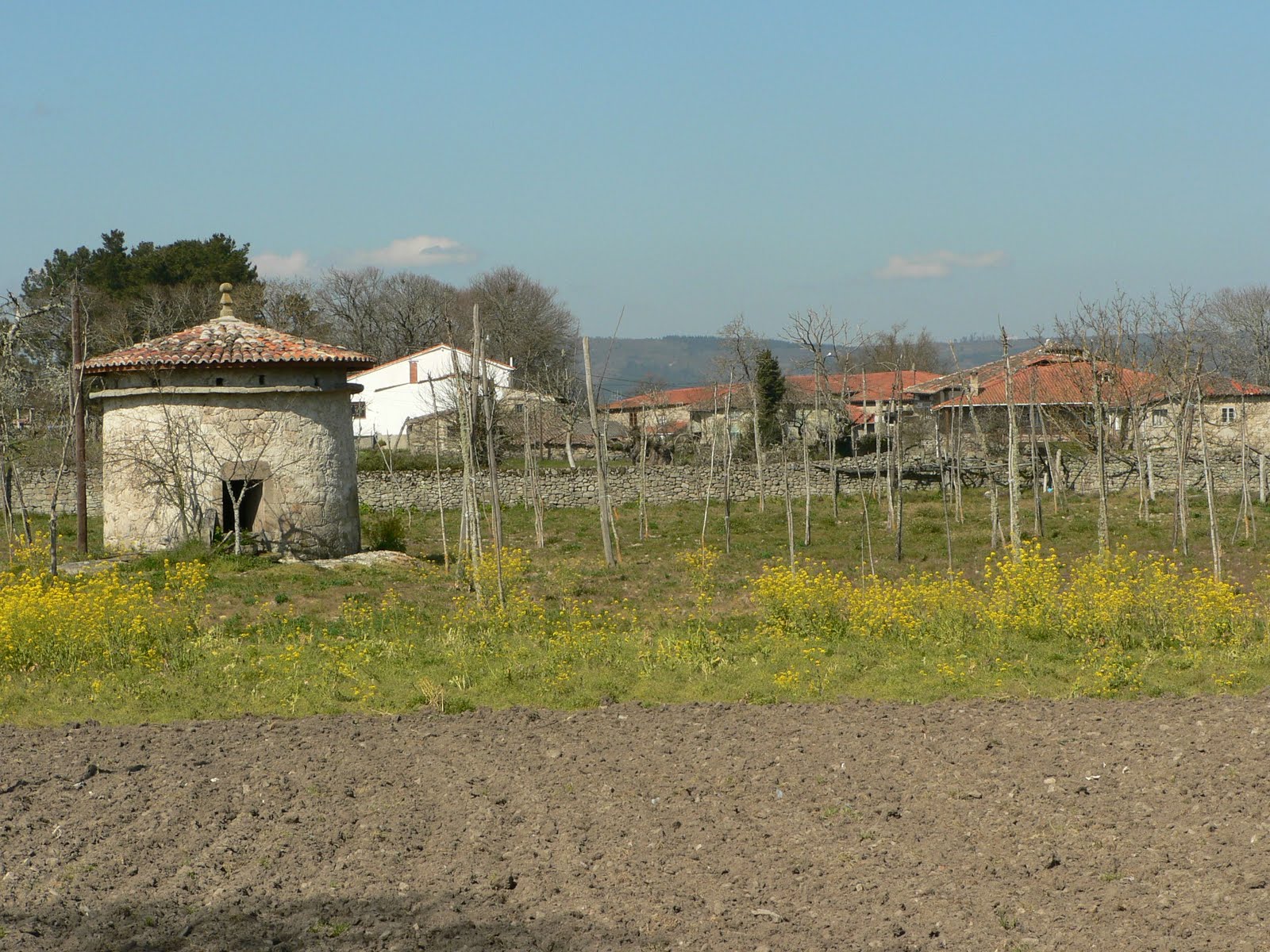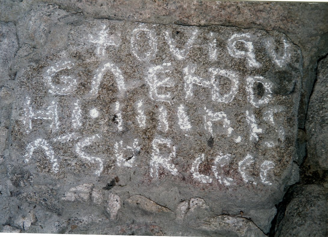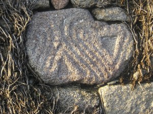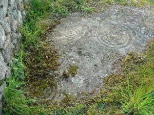 Seguimos a andaina entre os valos do igrexario onde, á nosa esquerda, no muro, hai unha inscultura de orixe castrexo-romana.