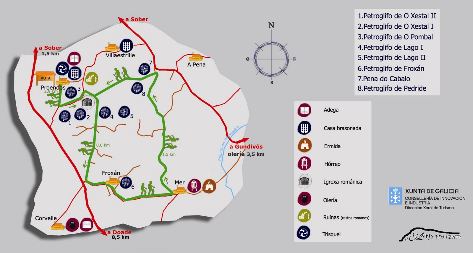 O roteiro comeza en Proendos, a 2 km de Sober pola estrada que une a capitalidade municipal con Doade.
