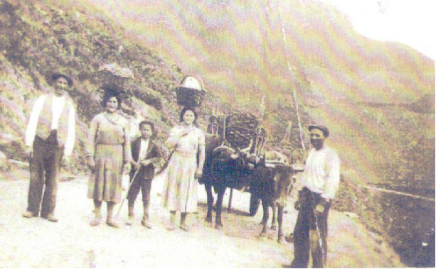 Podemos ver tamén na foto a xugada tirando do carro, pois viñan de facer a vendima.