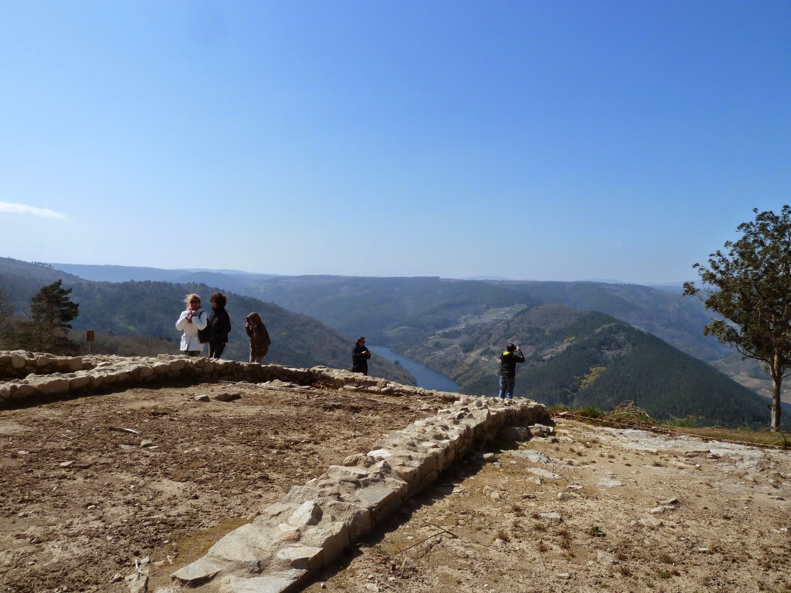 Na visita ao castro puidemos comprobar os espazos descubertos polas campañas de excavación e o seu emprazamento debruzado sobre o Miño fronte ao Cabo do Mundo, co castro da parroquia de Nogueira de Miño, en Chantada, xusto en fronte.