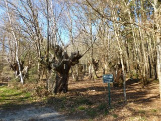 No inicio da ruta, á esquerda segundo camiñamos cara o Castelo, atopamos o que queda do Souto de Valgüaire, castiñeiros centenarios que sobreviven nunha plantación de piñeiros.
