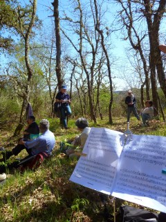 Comezamos na igrexa de Barantes, cunha peza de gaita para “os ancestros” e lectura poética, a de Sandoval do libro Territorios Estraños.