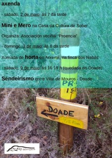 – sábado, 9 de maio: ruta de sendeirismo Vilar de Mouros – Doade.
