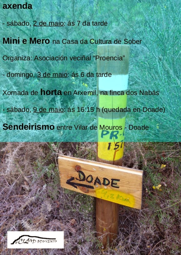 – sábado, 2 de maio: a Asociación “Proencia” organiza un corcerto de Mini e Mero.